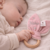 J’ai imaginé cet anneau de dentition en bois naturel personnalisé comme un compagnon rassurant :