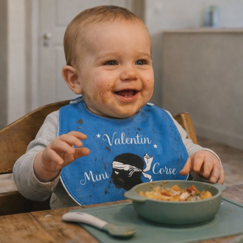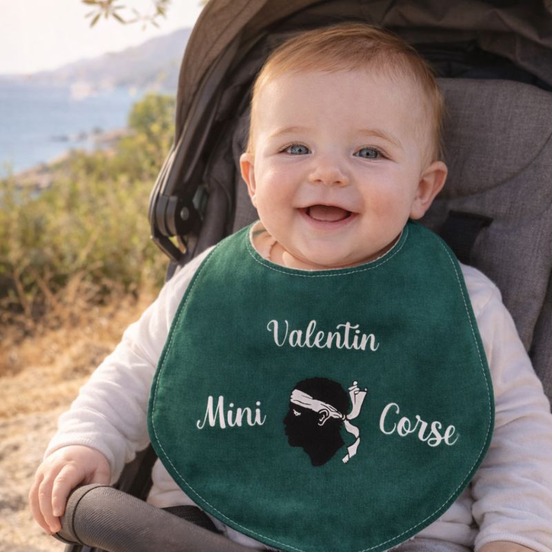 Idéal comme cadeau de naissance corse, ce bavoir personnalisé est parfait pour allier utilité et symbolique forte.