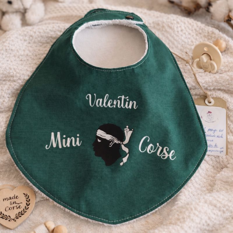 Chaque bavoir bébé personnalisé corse est réalisé à la main avec amour 🤍